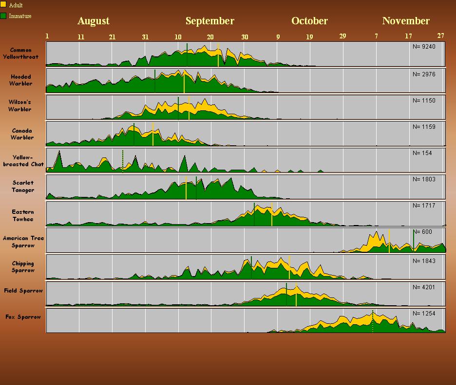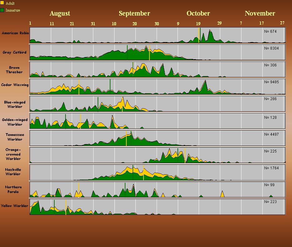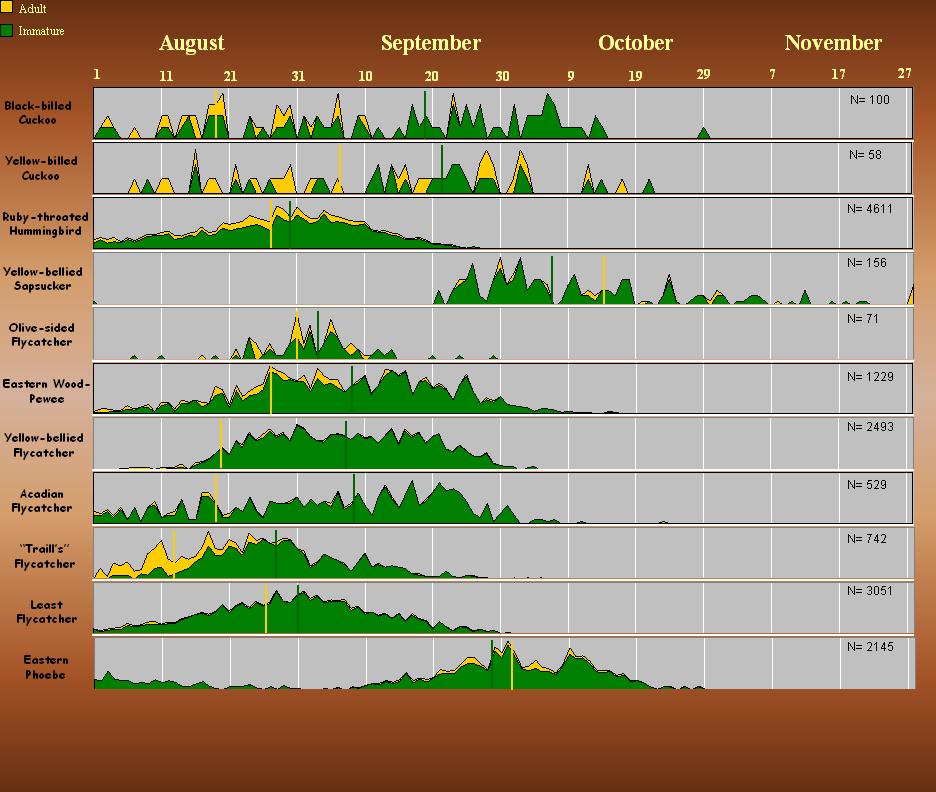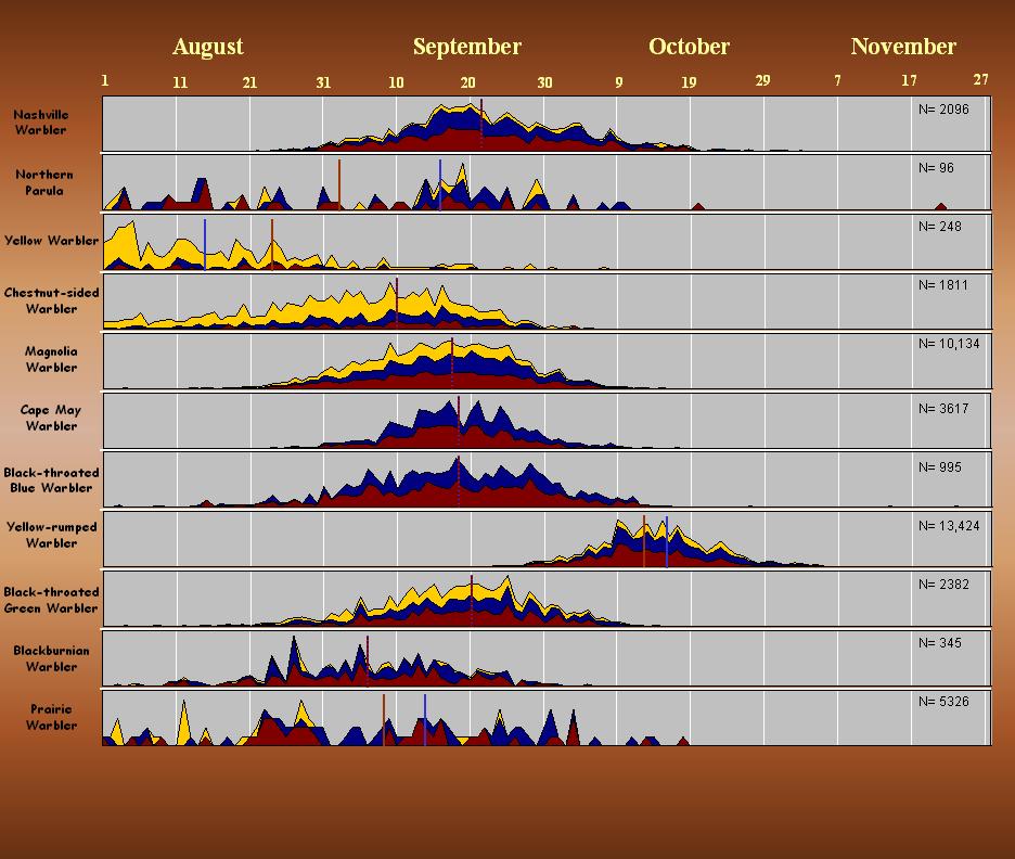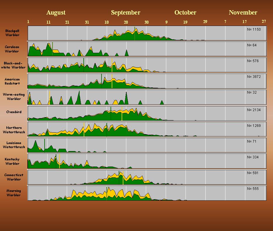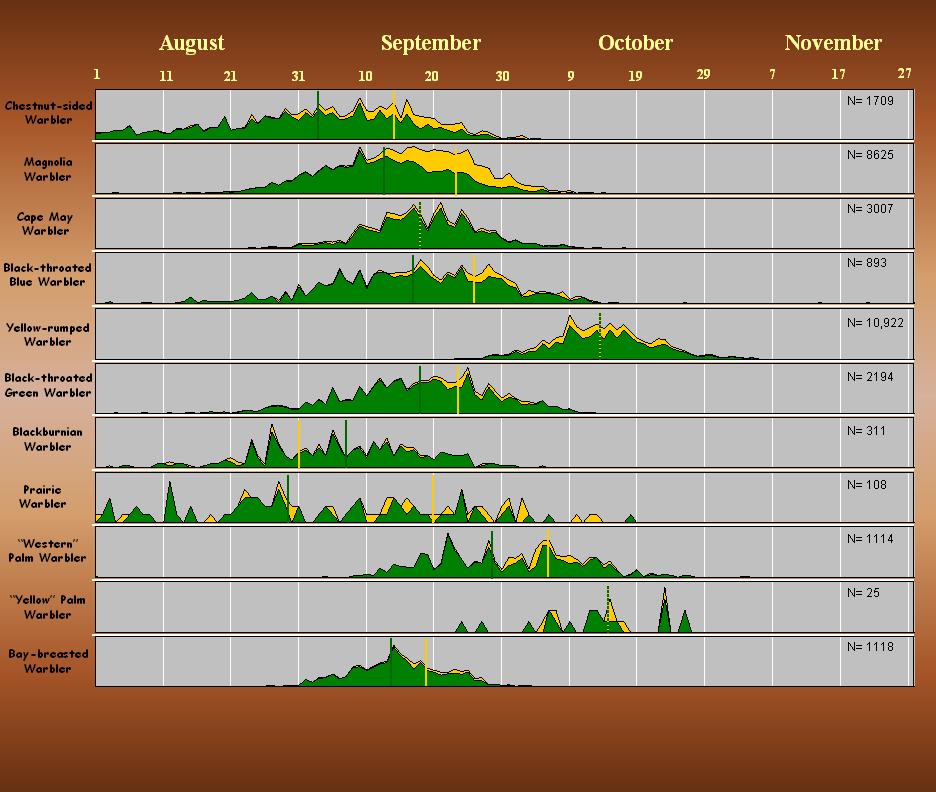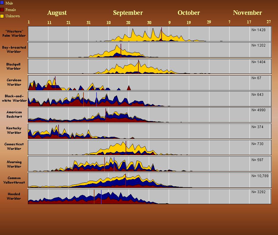 Redstart, and Eastern Phoebe, birds earlier in the season reflect the dispersal