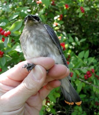 Our banding capture rate for this week was >50 birds/100 net-hrs., our highest capture rate since late April. The largest number of birds caught continues to be young-of-the-year (hatching year, or HY, in banding terminology) produced by the more common breeding residents in and around the banding area: Gray Catbird, Song Sparrow, American Redstart, and Hooded Warbler. Increasingly, however, early fall migrants are adding into our weekly banding list. One of the Yellow Warblers this week scored a maximum "3" fat on our 0-3 scale, and another scored a "2." The two Northern Waterthrushes banded on the last day of this week (the first ones banded since June 1) also were migrants with visible fat deposits.