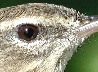 Along with skull condition and definitive plumage characteristics such as the presence or absence of molt limits, eye color often can be helpful in ageing birds. Sometimes the differences are striking, as when the eye color of immature Red-eyed Vireos and Eastern Towhees changes from plain brown to deep red from fall through spring, or when White-eyed Vireo juveniles eye color changes from dull gray to bright white.