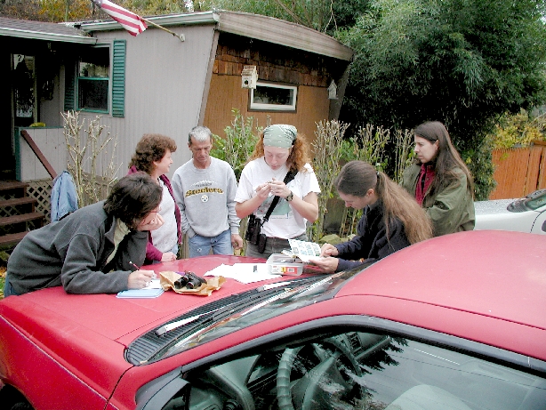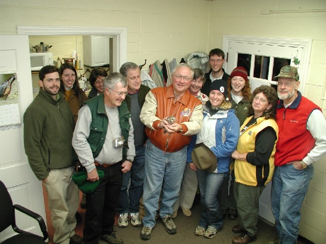 to right) is the principal fall banding crew at Powdermill: Bob Leberman,