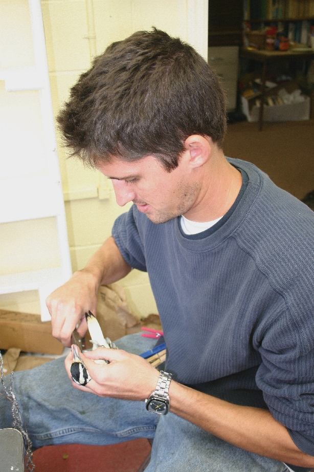 mist nets, extracting birds from mist nets, handling birds, applying bird
