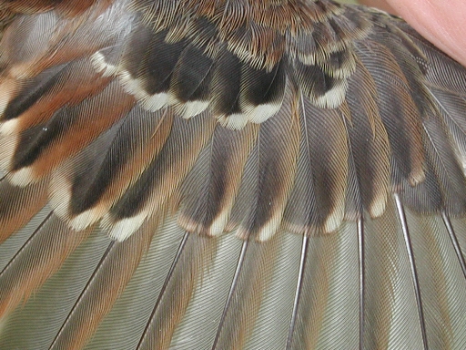 outer greater coverts. Note the pseudo-molt limit (different edging