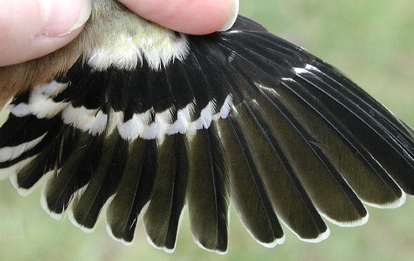 as the wing on the left, there is faint buffy edging on the carpal covert.
