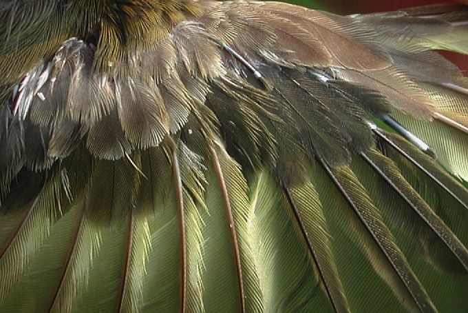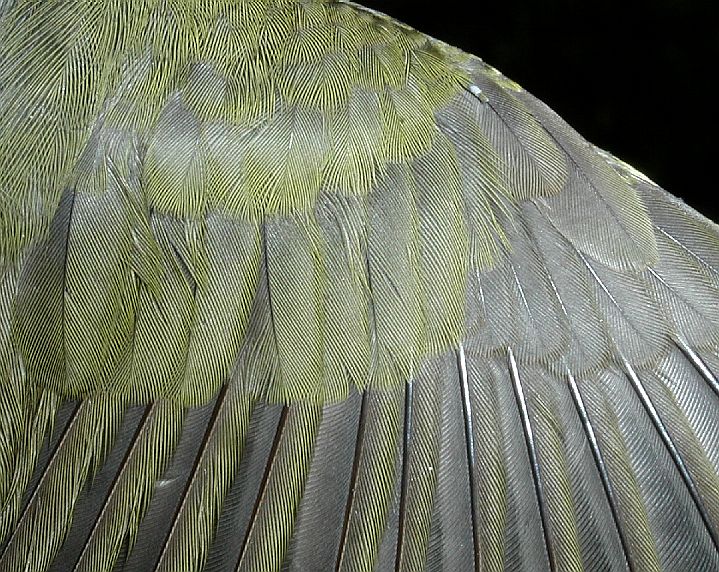 alula group, the so-called alula covert, is just coming out of its sheath.