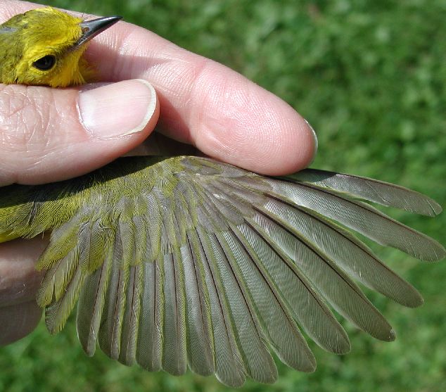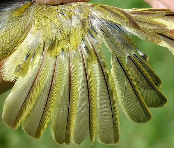 of an HY Kentucky Warbler banded this week shows the very last stages of