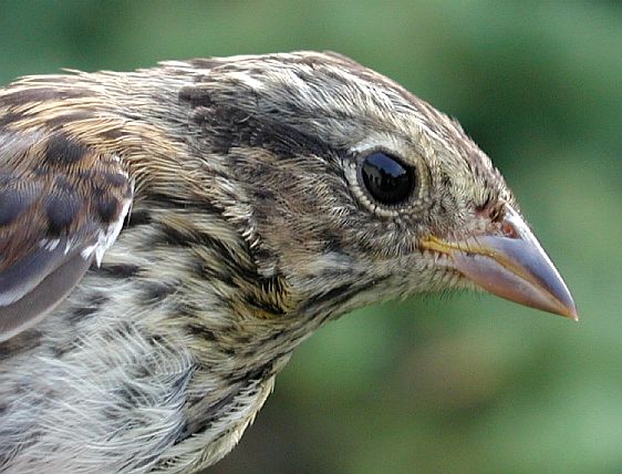 the head plumage and bill shape of a juvenile Swamp Sparrow. We snapped