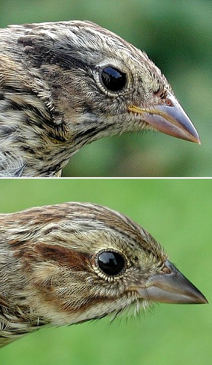 a quick photo of a juvenile Song Sparrow this week, and edited the two