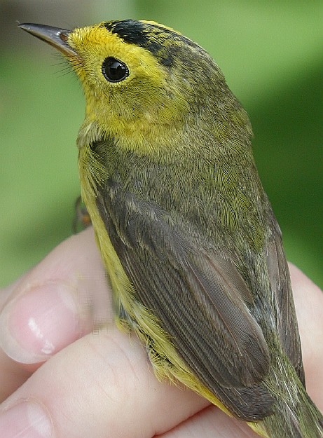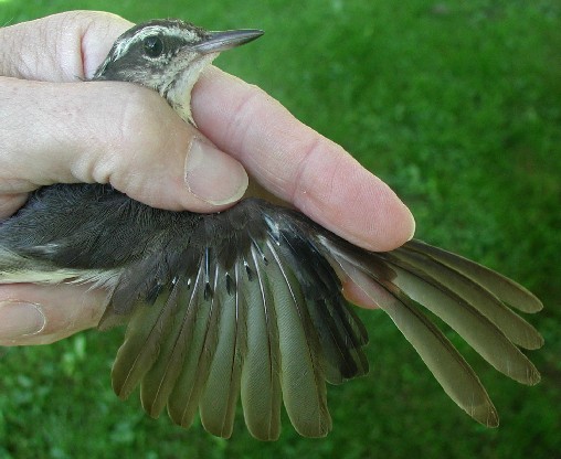 There have been sixteen other June captures of WIWA at Powdermill, about evenly split between males and females. More than half of these had heavy fat deposits when they were banded, and two SY males banded in the first week of June were recorded as having partially developed cloacal protuberances. It would be interesting to know if late birds like these (and especially very late ones like this June's individual) are, in fact, capable of continuing on successfully to their breeding grounds, or if they might need to stop short somewhere. If the latter, then how would the failure to attain full physiological breeding condition affect the onset and timing of their "post-breeding" molt? Presumably, and as we often witness with resident breeding birds at Powdermill (see AMRE discussion below), they initiate this molt much earlier than other breeding individuals of the population.
