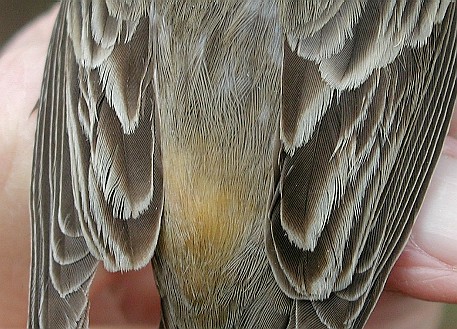 year) Dark-eyed Junco that we banded recently, the four mostly dark feathers