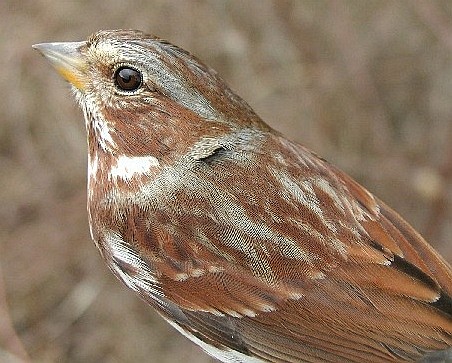 pinkish base to their lower mandible, reddish brown auriculars (cheek patch),