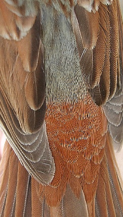 feathers beginning to replace the dull brown and pale yellow basic (i.e.,
