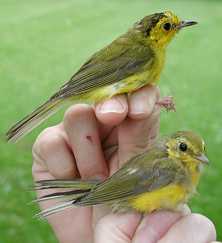 HY male (right) Northern Parulas banded on 9/14 and 9/20, respectively.