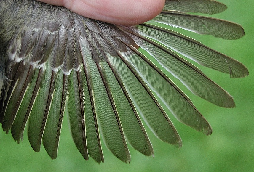 be seen its unmolted, worn and faded, juvenal secondaries, with their distinctive
