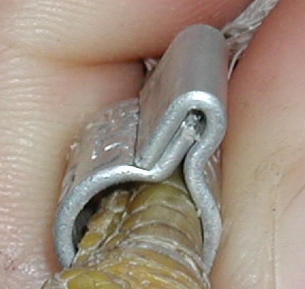 at a seam, "lock-on" bands are used for larger raptors to prevent them