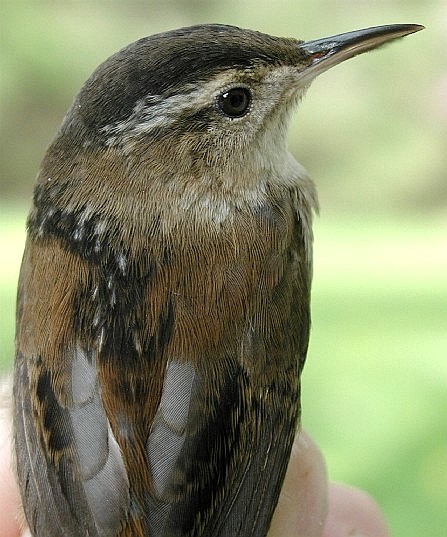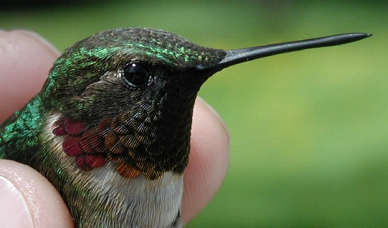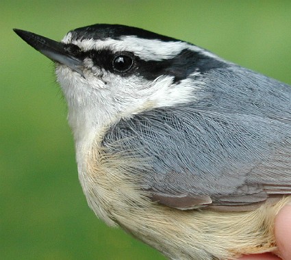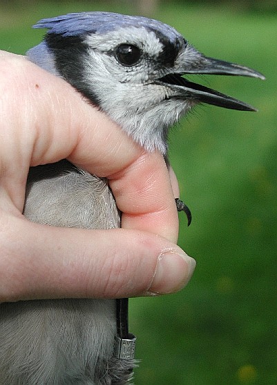 the bill of our first Rose-breasted Grosbeak, banded on April 29.