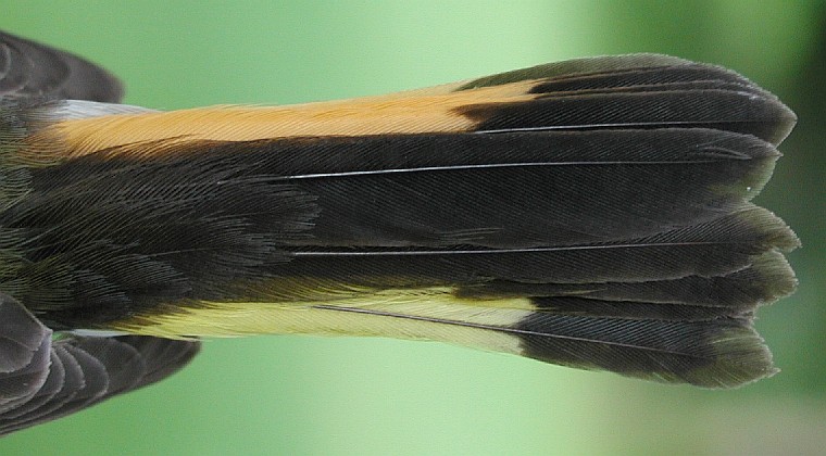 American Redstart (an early molting SY male banded on June 13 is pictured