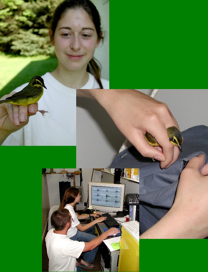 near their nests. In the photos below, Emma holds a Kentucky Warbler,