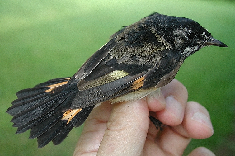 (SY) male American Redstart undergoing its definitive prebasic molt, like