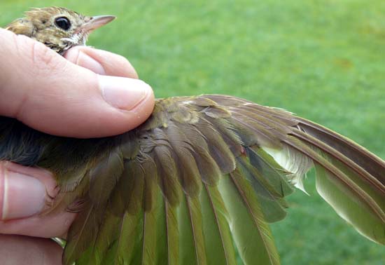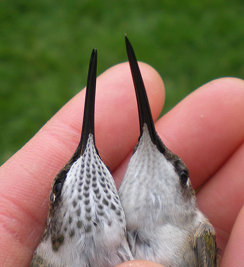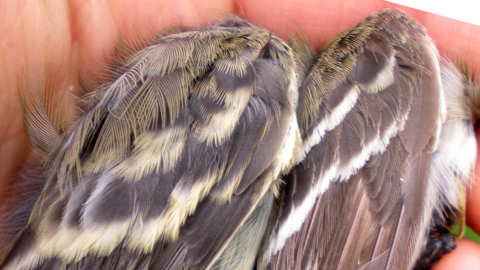 by the broad buffy wingbars, and the bird on the right as an AHY individual