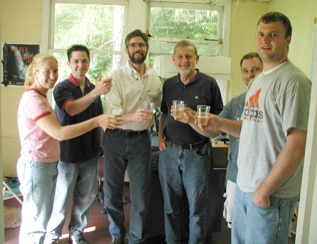 We had no sooner rinsed our glasses and swept away the confetti than an eager group of children showed up at our door ready for their banding demonstration--they missed the 500,000th bird by less than 15 minutes but seemed quite happy with the Rose-breasted Grosbeak, Scarlet Tanager, Downy Woodpecker, Louisiana Waterthrush, Yellow Warbler, and Red-eyed Vireo that followed!