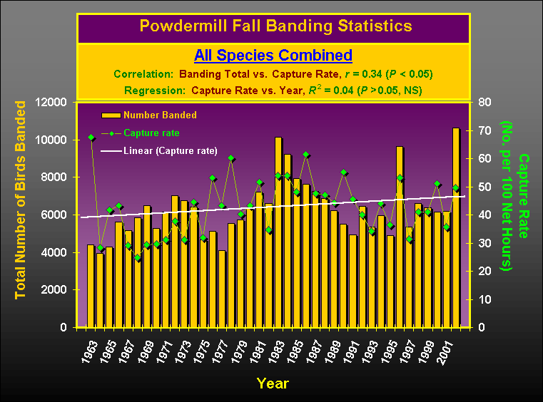 rate (all species combined) across fall seasons at Powdermill (see